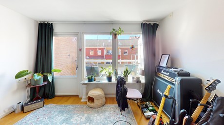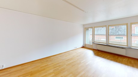 Planlösningen erbjuder tre väl tilltagna rum, ett ljust kök med goda möjligheter, samt ett badrum som är under uppbyggnad. Bostaden har bra ljusinsläpp och fina förutsättningar att bli något alldeles extra.